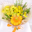Солнечный комплимент – букет из хризантемы, альстромерии и герберы