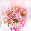 Альстромерия розовая – 3 шт.,упаковка, лента.